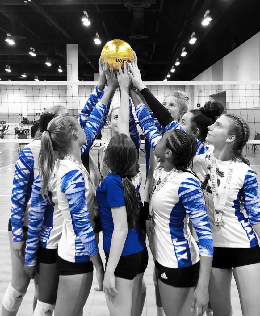 The 14 Royal team played this past weekend at the Northern Lights Qualifier in Omaha, Nebraska and took home the club’s 1st ever bid to play in the USA Volleyball Girls Junior National Championship! Playing in the USA Division, 14 Royal dropped only one match (on Day 2) and went undefeated on Sunday- winning 4 straight matches to win the championship and earn the gold ball.